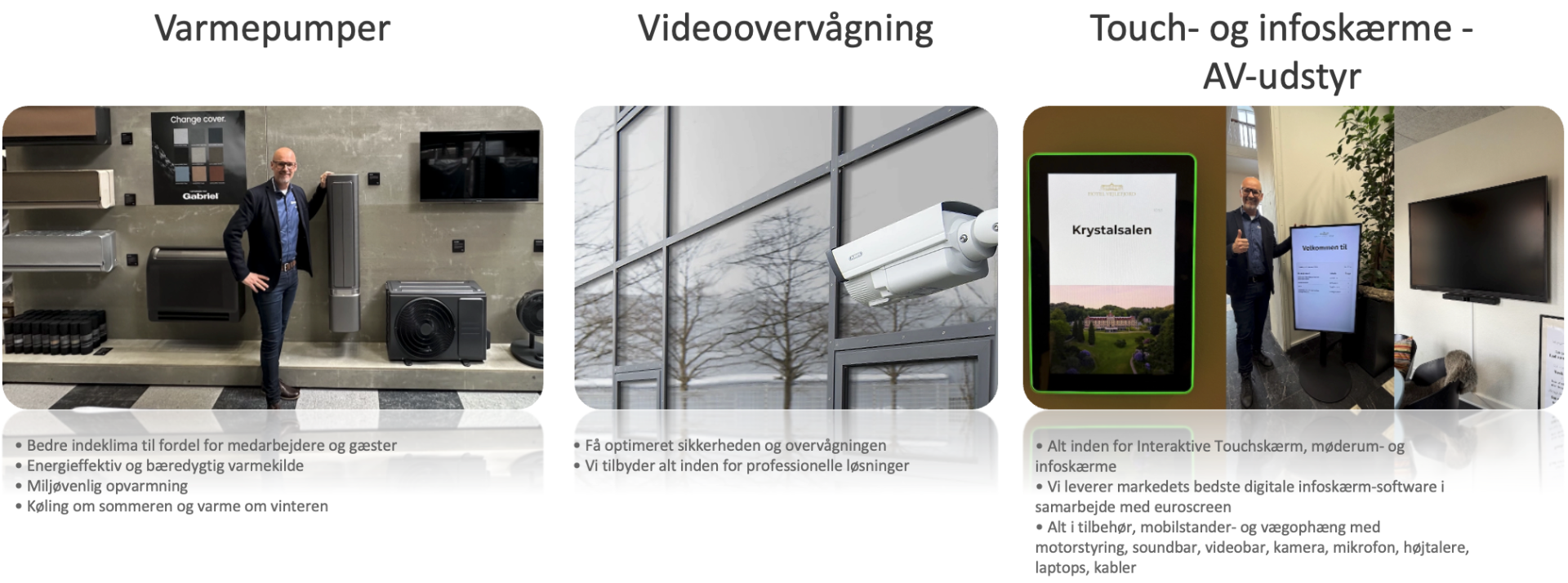 AV-udstyr - TV - Streaming - Cast - Netværk - Wi-Fi - Touchskærme - Overvågning - Varmepumper - Vaskerier
